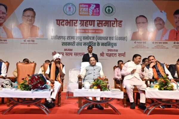 मुख्यमंत्री छत्तीसगढ़ राज्य लघु वनोपज (व्यापार एवं विकास) सहकारी संघ मर्यादित के नवनियुक्त अध्यक्ष और उपाध्यक्ष के पदभार ग्रहण कार्यक्रम में हुए शामिल रायपुर, 19 नवंबर 2025 मुख्यमंत्री श्री विष्णु देव साय आज राजधानी रायपुर स्थित मेडिकल कॉलेज सभागार में आयोजित छत्तीसगढ़ राज्य लघु वनोपज (व्यापार एवं विकास) सहकारी संघ मर्यादित के नवनियुक्त अध्यक्ष…