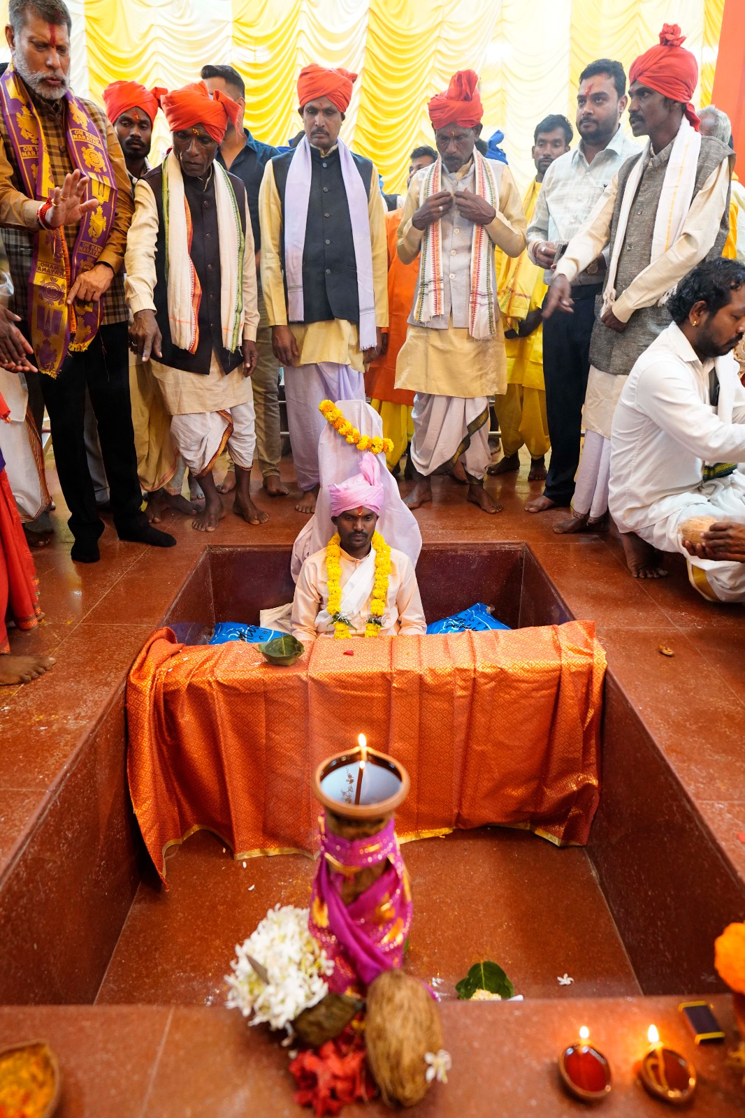 जोगी के रूप में बैठने वाले व्यक्ति को कई विशेष प्रक्रियाओं से गुजरना पड़ता है। सबसे पहले, वह अपने पितरों का श्राद्ध करता है। इसके बाद, उसे नए वस्त्र पहनाए जाते हैं और मावली माता मंदिर ले जाया जाता है, जहां तलवार की पूजा होती है। पूजा के बाद, जोगी तलवार लेकर सिरहासार भवन लौटता है और एक कुंड में योगासन की मुद्रा में बैठ जाता है।