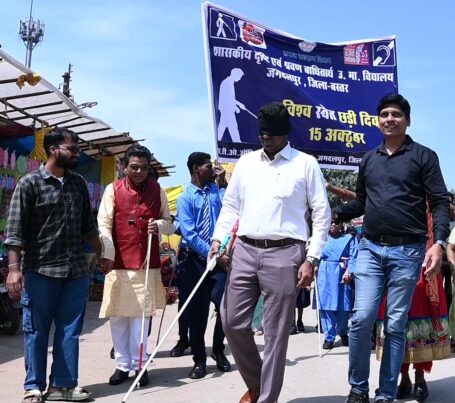अत्यंत उत्साह और हर्षाेल्लास के साथ मनाया गया। इस अवसर पर दृष्टि एवं श्रवण बाधित छात्र-छात्राओं द्वारा निकाली गई जनजागरूकता रैली में बस्तर कलेक्टर हरिस एस ने एक प्रेरणादायक कदम उठाते हुए आंखों पर ब्लाइंडफोल्ड (पट्टी) बांधकर और हाथों में श्वेत छड़ी लेकर चलने का प्रयास किया । कलेक्टर के इस कार्य ने दिव्यांग बच्चों में आत्मविश्वास और उत्साह का संचार किया।