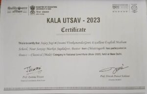 बस्तर जिले से एकमात्र विवेकानंद स्कूल से २०२२-२३ में दिव्यांशी ठाकुर का चयन लोक नृत्य में राष्ट्रीय कला उत्सव, भुवनेश्वर के लिए हुआ था तथा अगले वर्ष २०२३-२४ में शास्त्रीय नृत्य विधा मे सुजय जोगी का चयन राष्ट्रीय कला उत्सव, दिल्ली के लिए हुआ।।प्राचार्या मनीषा खत्री कहती है कि बस्तर जिले से राष्ट्रीय स्तर पर कला उत्सव मे चयन सिर्फ विवेकानंद स्कूल के बच्चों का हुआ